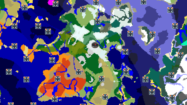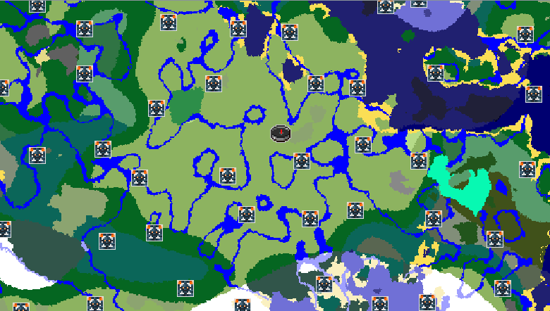Un immense continent regroupant tous les biomes du jeu sur une seule île. Parfait pour un projet de long terme, avec des vallées de Jardin Pâle, montagnes fleuries, grandes plaines, forêts paisibles, champs de champignons et même une île jungle juste au large. La carte complète de ce continent sera un chef-d’œuvre à afficher dans votre salle des cartes.
