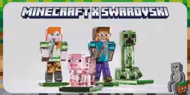 Minecraft s’associe à Swarovski pour créer quatre figurines en cristal vendues entre 300 € et 330 €, avec un skin exclusif Crystal Suit offert en jeu.
