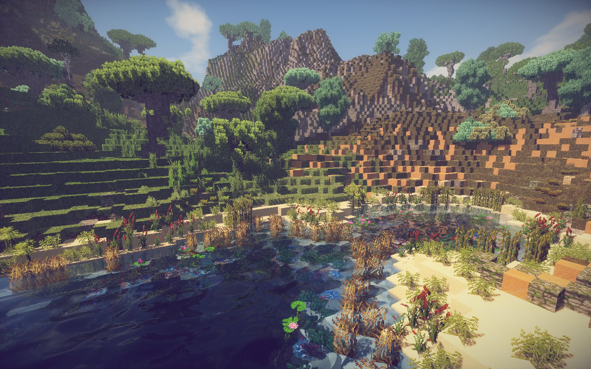 Justement, c’est une ambiance que cherche à distiller Arcane Shaders. Une atmosphère médiévale, qui tient du fait de la rusticité du shader. Entre les flaques d’eau, les effets de chaleur, le flou, les étoiles, Arcane Shaders donne à voir une nature brute, parfois même hostile ou fantastique. Là où beaucoup d’entres représentent des paysages en majesté, mis en valeur par de sublimes effets, ce shader se contente d’un réalisme cru, particulièrement efficace pour instiller une atmosphère ancienne.