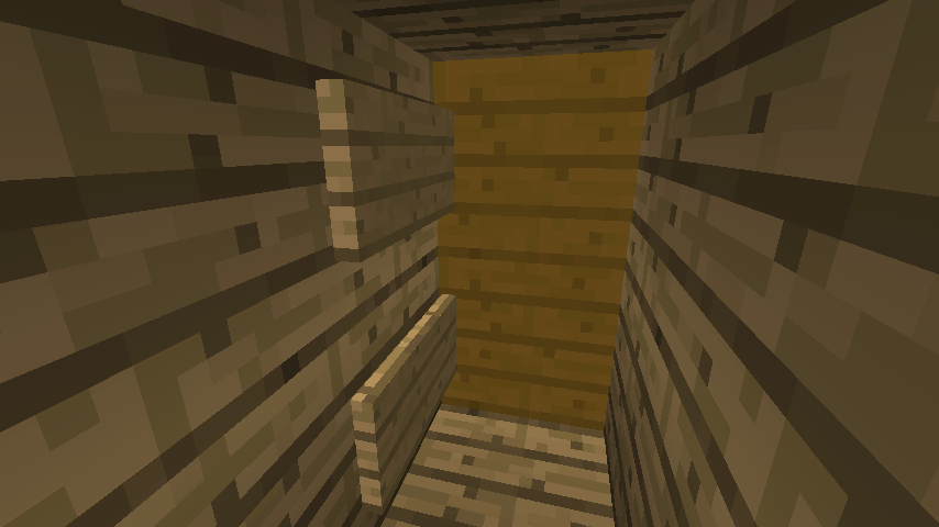 Impossible de commencer cette liste sans le passage secret le plus évident, celui qui en est la quintessence même. Aussi simple que peu coûteuse, cette méthode extrêmement connue consiste à construire un mur, y percer un trou de deux blocs qui forme votre passage et à mettre sur les murs du passage ainsi créé deux panneaux. Ensuite, en faisant un clic-droit sur la tranche d’un des panneaux, vous pourrez placer un tableau qui recouvra l’ouverture. Vous n’avez plus qu’à vous engouffrer dans celui-ci pour accéder à votre passage !