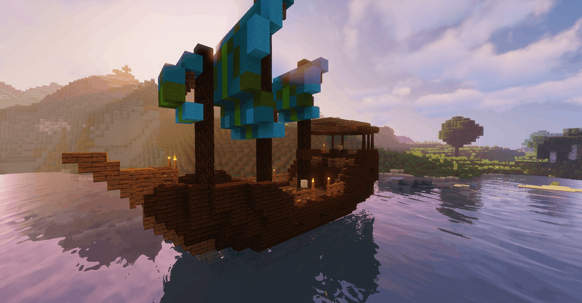 Ships out on the oceans, comme son nom l’indique, est donc un datapack ajoutant des navires se générant sur l’eau. D’après son auteur, il existe 5440 combinaisons possibles, grâce aux différents bois et couleurs de laine du jeu.
