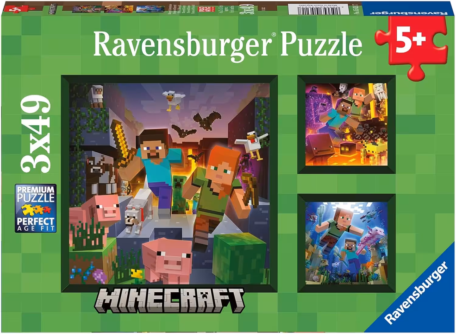 Pour les jeunes fans de Minecraft, ce set de puzzles Ravensburger est une activité à la fois ludique et éducative. Avec 3 puzzles de 49 pièces, accompagnés de posters pour guider les enfants, il offre une introduction parfaite à l’univers du puzzle dès l’âge de 5 ans. Cette activité calme permet aux enfants de développer leur motricité, leur concentration et leur sens de l’observation tout en s’amusant à assembler des images inspirées de l’univers pixelisé de Minecraft.