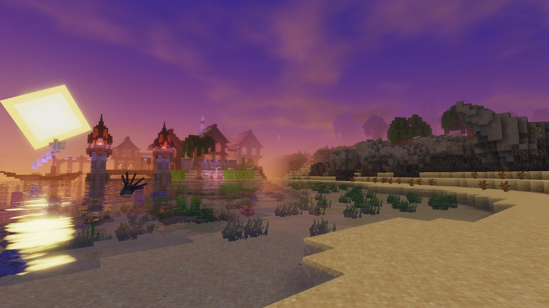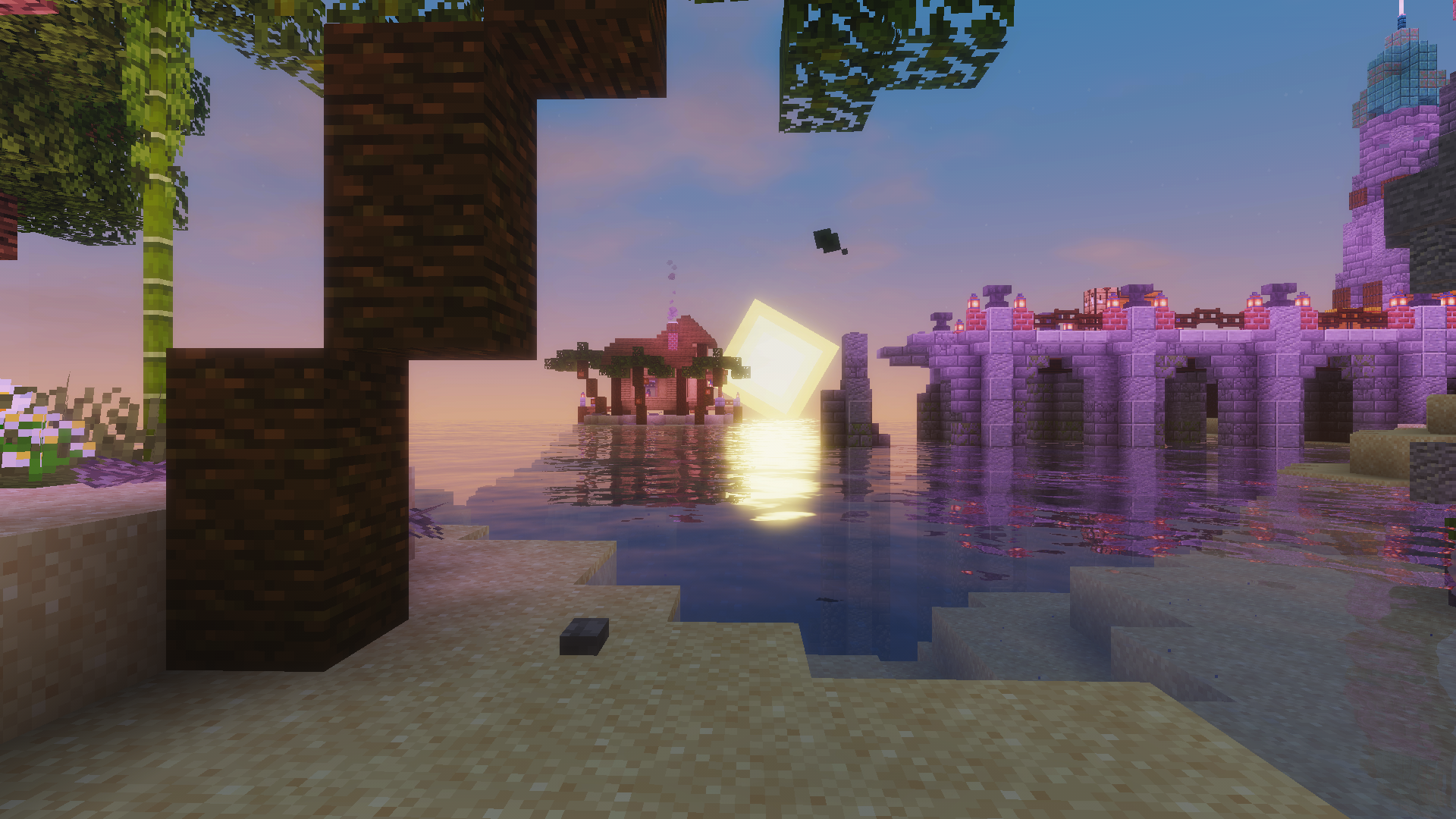 Comme expliqué dans l’introduction, Dreamlight Shaders met l’accent sur la progression de la lumière. Les levers et couchers de soleil s’étendent sur plusieurs nuances, ce qui donne du volume aux reliefs et aux ombres. Cette approche sert bien les biomes ouverts, notamment les plaines et les plages, où l’on voit clairement la lumière glisser sur le terrain.