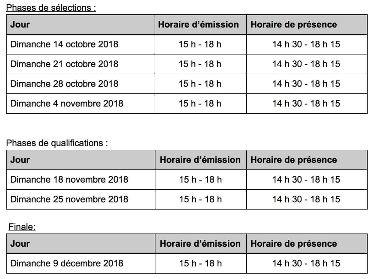 - Date : du 14 octobre au 9 décembre, toujours les dimanches