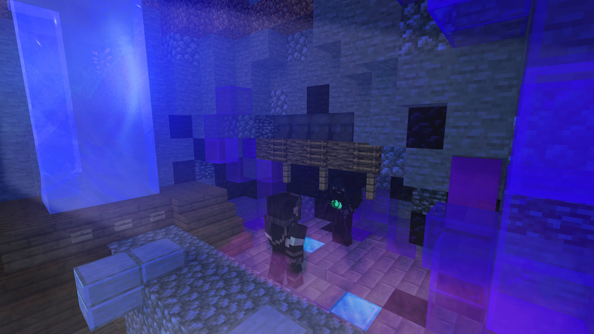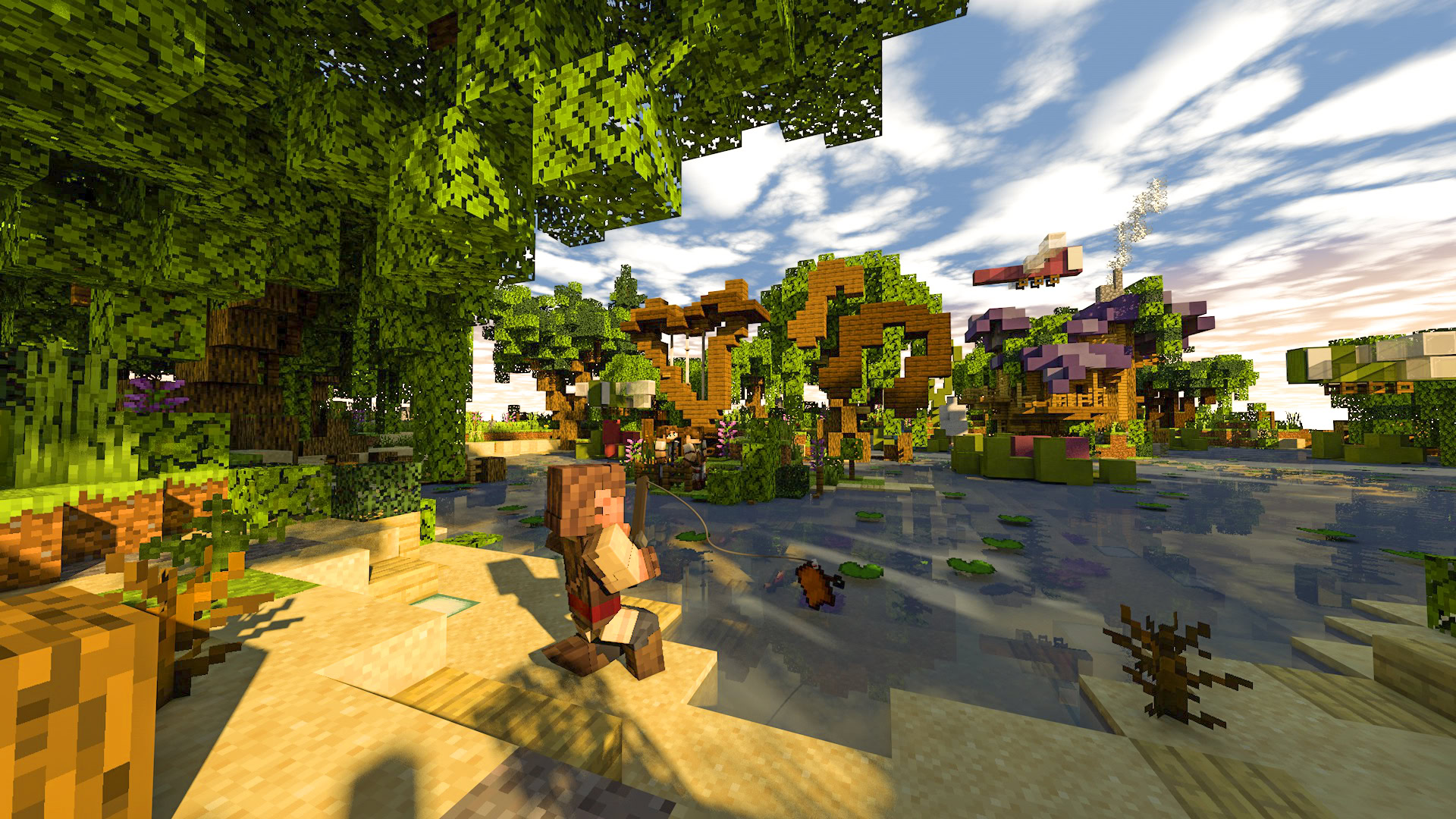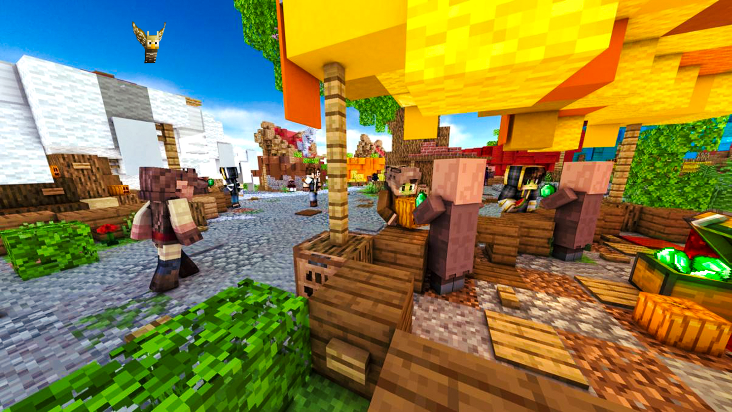 Ces émeraudes, elles peuvent être collectées de plusieurs façons. D’abord, par le biais d’échanges. Les marchands installés sur l’île de spawn vous en échangeront volontiers contre des items obtenus par le biais de diverses activités : agriculture, minage, pêche, chasse… Notez également la présence d’un marché noir, qui vous permettra de les échanger contre des objets rares. En outre, une centaine de blocs d’émeraudes est cachée sur la map. À vous de les débusquer pour augmenter votre score. Enfin, notez que la mort d’un joueur, en plus d’entraîner le drop de tout son inventaire, a également pour conséquence la perte automatique de 1% des émeraudes de son équipe. Autant dire qu’une mort en fin de semaine peut vous coûter très cher, au sens propre du terme !
