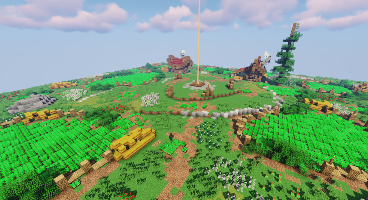 On l’a vu, Skytale n’a pas lésiné sur les moyens. C’est également vrai pour la map dans laquelle évolueront les participants. Accueillir 200 joueurs implique un environnement taillé pour un affrontement de cette taille, que les organisateurs ont prévu spécialement pour l’occasion. La map se décompose en deux éléments : l’île de spawn et la map de jeu en tant que telle. Les participants peuvent se déplacer entre les deux grâce à quatre beacons, qui font office de téléporteurs.