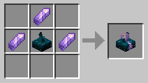 Le capteur sculk peut être utilisé dans une recette pour fabriquer un capteur sculk calibré, en ajoutant trois Eclats d’améthyste.