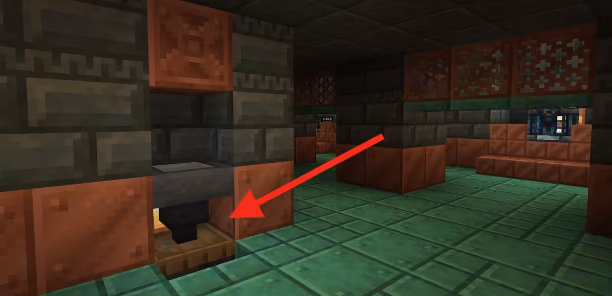 Depuis 1.21.2 (Java) et 1.21.30 (Bedrock), l’entrée des chambres d’épreuve (Trial Chambers) comporte une petite poubelle : un entonnoir placé au-dessus d’un baril. C’est prévu pour vous aider à trier/vider vos poches à l’entrée.
