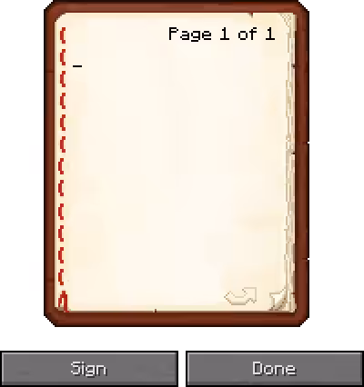 En tenant un livre et plume en main, un joueur peut ouvrir une interface d’édition.