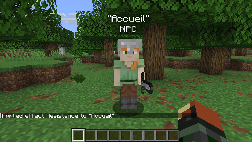 , équipement complet, effets et attributs possibles, aucune IA. Affiche « NPC » en permanence. Idéal pour mise en scène propre et contrôle total par commandes. - PNJ (villageois/entités interactives) : possèdent une IA, se déplacent, interagissent, commercent, apparaissent naturellement. On ne contrôle pas leur skin comme un joueur ; ce ne sont pas des mannequins d’exposition.
