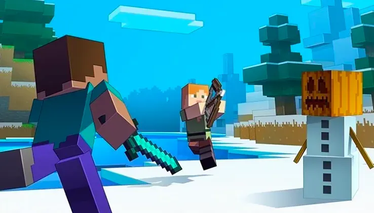 Minecraft contient des éléments de combat, mais ceux-ci restent abstraits en raison du style graphique en blocs. Les joueurs utilisent des armes (épées, arcs, haches) pour combattre des créatures hostiles comme les zombies, les squelettes ou les creepers (créatures vertes qui explosent).
