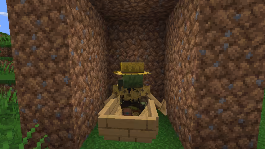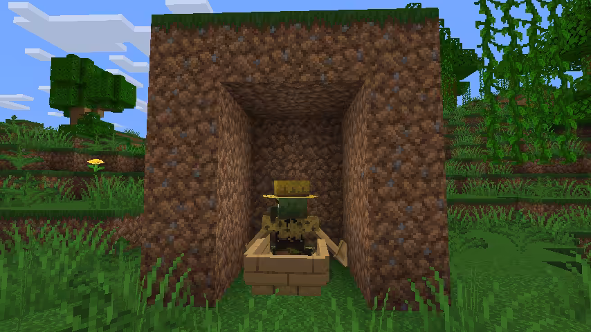 - Maintenir à l’ombre et attendre : 3–5 min environ sur Java, ~100 s sur Bedrock.