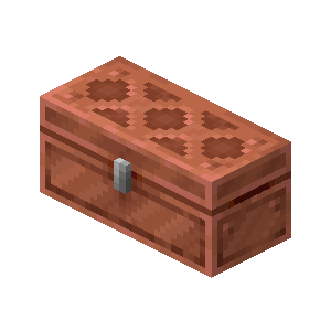 Le coffre en cuivre s’obtient uniquement en invoquant un golem de cuivre. Une fois ramassé, il permet de déverrouiller sa recette de fabrication. Ce coffre se distingue par sa capacité à être utilisé activement par les golems de cuivre, qui s’en servent pour stocker ou transférer les objets dans d’autres coffres de la base.