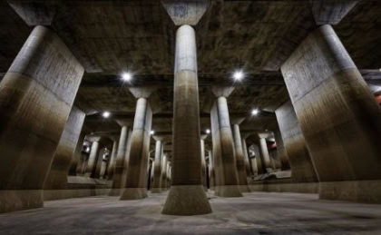 - Un immense réservoir de régulation de pression, surnommé “la cathédrale souterraine”