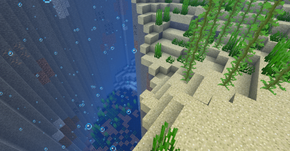 Potentielle première étape des biomes souterrains, les cavernes et les failles inondées ont été ajoutées dans le snapshot 18w08a. L’idée est simple : toutes les cavernes se générant sous les océans sont remplies d’eau, et des failles peuvent apparaître au fond de ceux-ci. Mojang l’a légèrement enrichie avec l’ajout de blocs de magma et de colonnes de bulles.