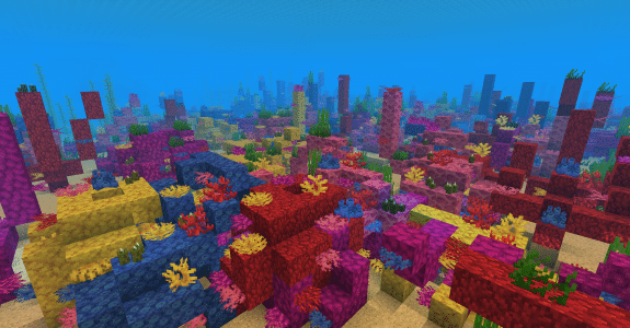 Proposée il y a plus de 3 ans, cette suggestion avait pour but de combler le vide dans les océans, en reprenant en partie l’idée des algues présentée plus tôt, et en y ajoutant celle du corail, un bloc ayant de multiples couleurs et textures. En l’implémentant dans le snapshot 18w10d, Mojang n’a cependant retenu que 5 couleurs de coraux, ainsi que leur variante morte.
