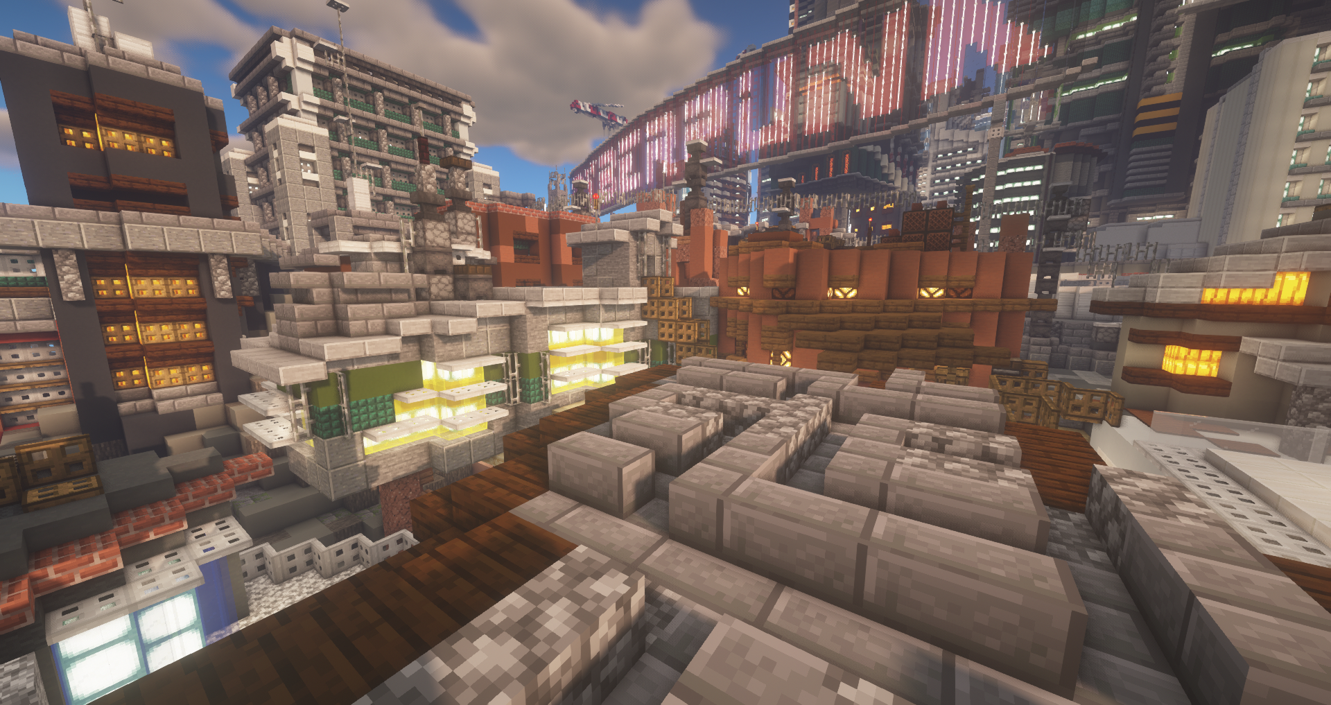 Comment ne pas être ébahi par une carte comme celle là ? ElysiumFire prouve et démontre encore une fois leur maitrise totale de Minecraft en terme de construction. La carte est belle, correctement proportionné et ridiculeusement grande ! L’architecture décalée du style “CyberPunk” n’étant pas habituel et commun, y faire un tour devient une vrai balade rafraichissante et inspirante ! Fortement inspirée du jeu CyberPunk 2077, elle reste cependant assez unique pour ne pas être considérée comme copie conforme. Avec un équivalent de 1500×1500 blocs d’envergure, elle fait partie des mastodontes des cartes de constructions.