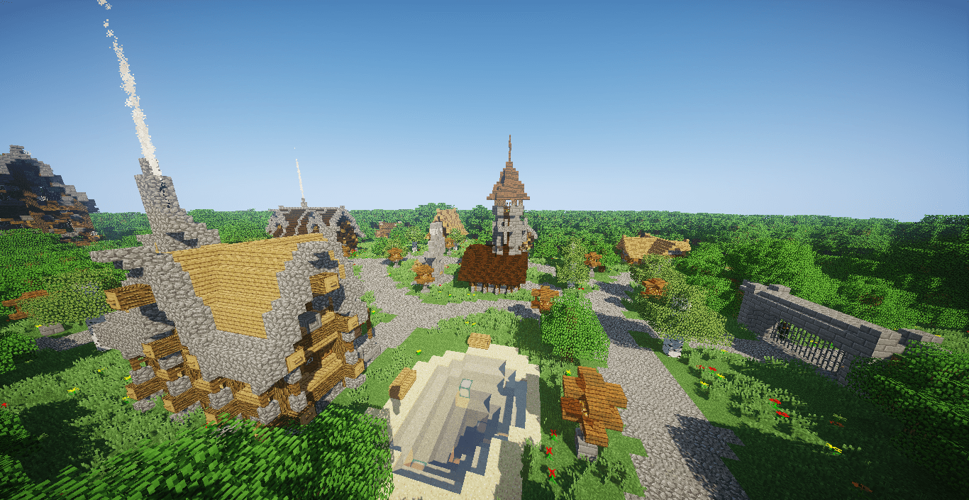 Pour finir, le village a une durée de jeu d’environ une heure. Un resource pack modifiant les textures est déjà présent dans la map. Mais, il vous faudra en installer un autre, contenant les sons customisés. Par ailleurs, il est nécessaire d’avoir le mod Optifine d’installé ainsi que le “Custom Entity Models” d’activé pour avoir les textures correctes des PNJ. Et, dernière chose, vous devez avoir votre distance de rendus (render distance) à plus de 17 chunks.