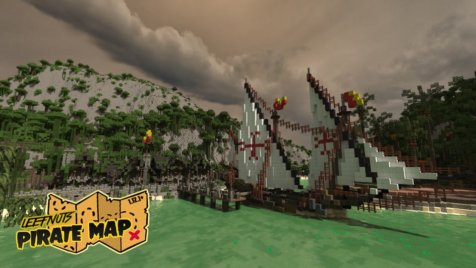 Comme son nom l’indique, Leefnuts Pirate est une map qui met le thème de la piraterie à l’honneur. Elle est ainsi jalonnée de bateaux, qu’ils gonflent fièrement leurs voiles, canons dehors, ou bien qu’ils étaient ravagés part plus puissants qu’eux. Ces bateaux évoluent pour l’instant dans un environnement océanique assez morne, mais l’auteur compte très prochainement passer la map en 1.13, et ainsi rendre un peu plus trépidants les fonds marins.