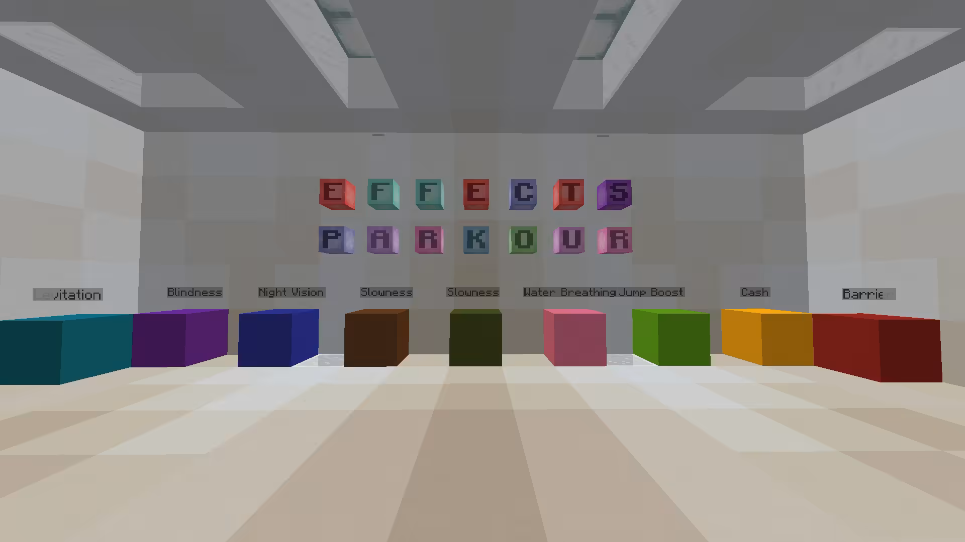 Parkour Effects est une carte de type parkour pour Minecraft qui vous propose un défi original. Cette carte se distingue par un concept original qui renouvelle le genre du parkour : l’interaction stratégique avec des blocs de couleurs dotés d’effets diversifiés. Ce défi ne se limite pas à tester votre agilité et votre précision de saut ; il exige une attention, car chaque bloc sur lequel vous vous posez peut déclencher un effet inattendu, influençant directement votre manière de naviguer dans le parkour.