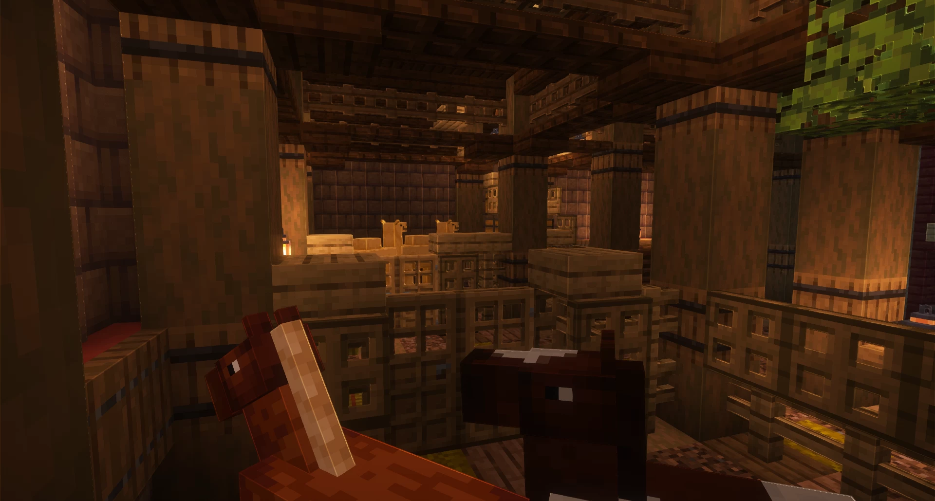 Le cœur de Rustic Farm, c’est sa grange monumentale. Extérieurement, on retrouve une architecture rustique cohérente : volumes imposants, charpente apparente, jeux de bois et de pierre qui s’intègrent bien dans les reliefs ocre des badlands.