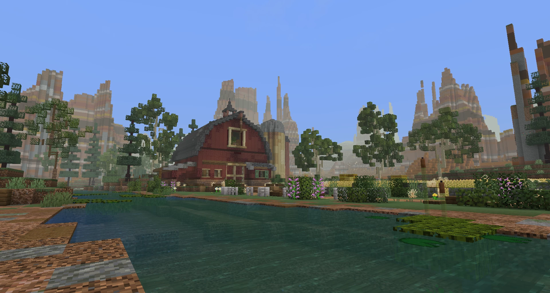 Il y a des cartes qui misent sur la démesure, d’autres sur la technique. Rustic Farm, elle, fait le choix de l’ambiance. Ici, tout tourne autour d’une grande ferme installée dans un vaste biome de badlands vanilla, avec un bâtiment principal qui attire immédiatement le regard : un immense barn au style réaliste, pensé comme une véritable « barndominium ».