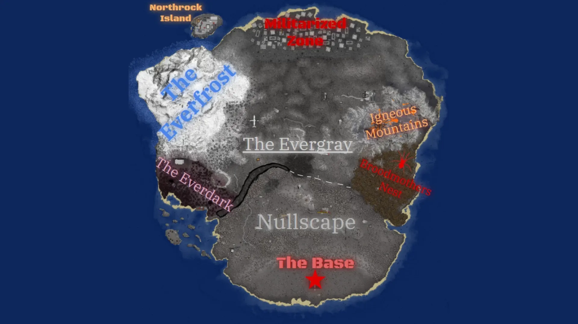 - Everdark, l’un des biomes les plus marquants, a été totalement retravaillé : plages en gravier et béton gris, nouvelles structures, ajout de coraux morts, et une ambiance visuelle plus sombre.