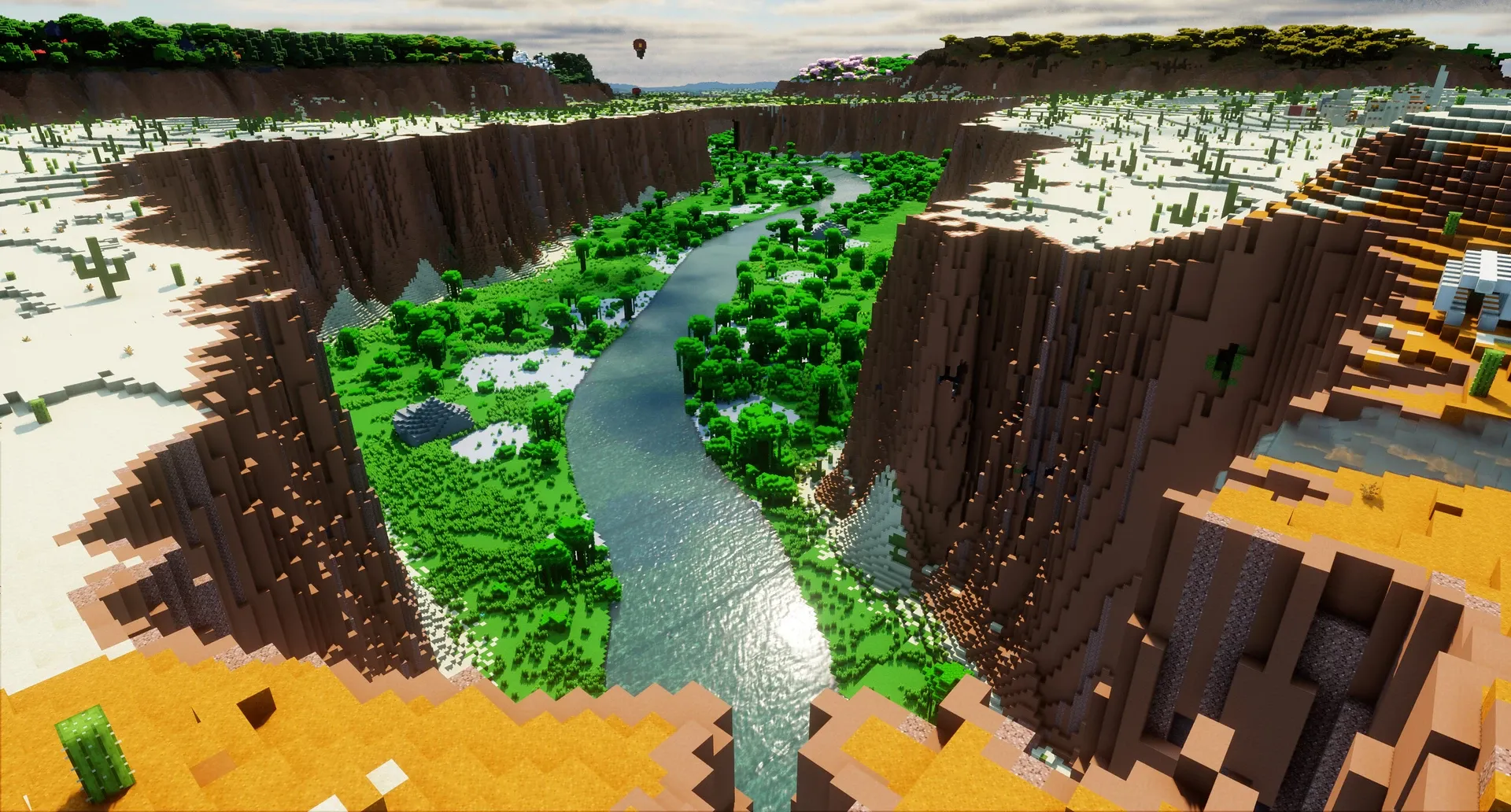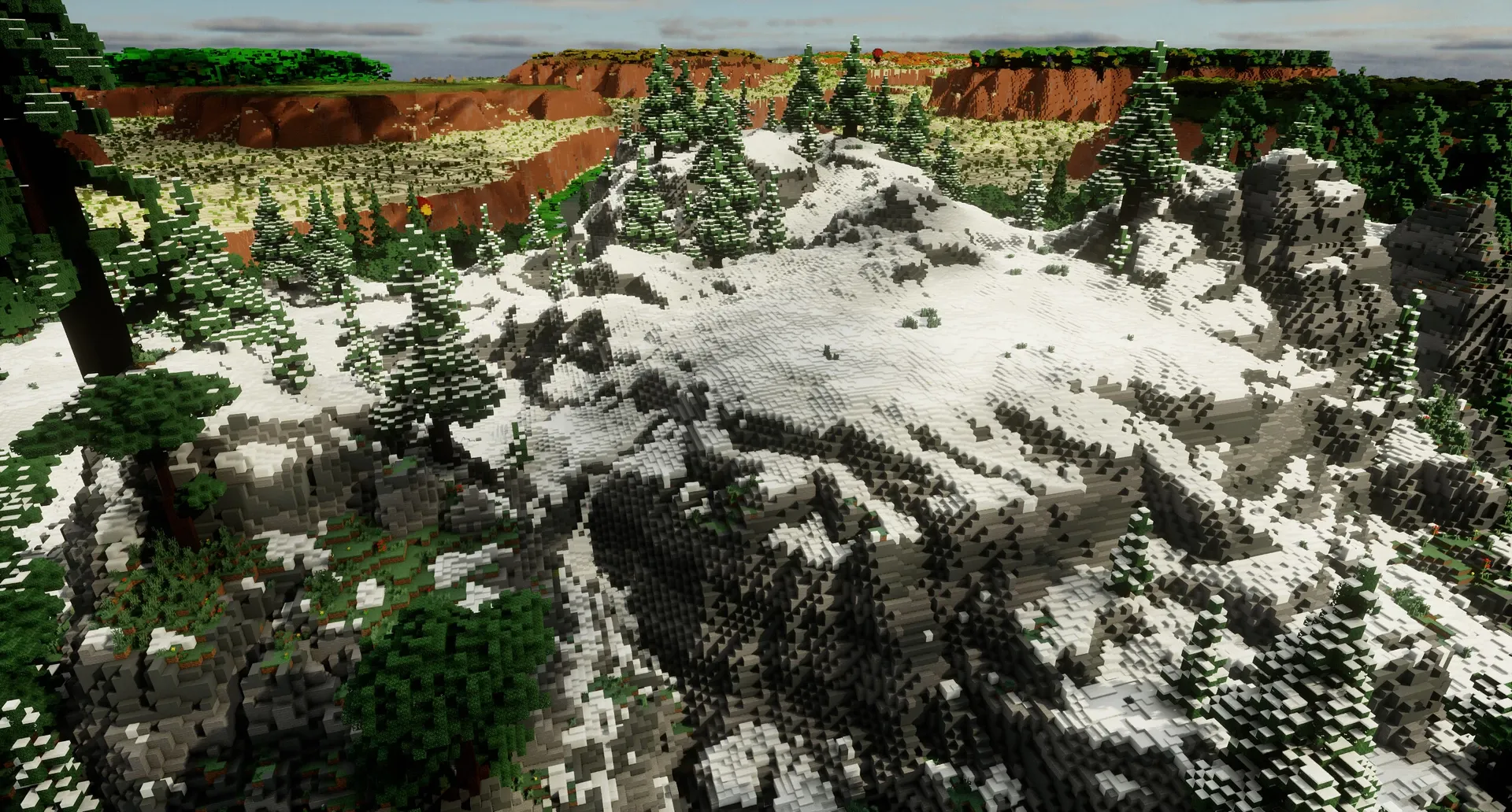 Slide Canyon est une carte Minecraft 1.21+ de 5 000×5 000 blocs où le relief mène la danse : des gorges qui serpentent, des plateaux calmes pour s’installer, puis, plus bas, des galeries retravaillées à la main. L’auteur annonce un donjon dédié, trois villages disséminés et un sommet à Y 320 — de quoi lancer une partie en survie avec des jalons clairs dès les premières minutes.