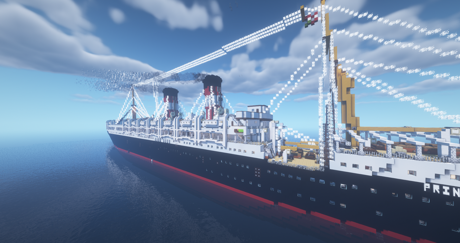 Pour parler en chiffres, ce bateau englobe un total de 288 blocs de longeur pour 31 blocs de largeur. Il possède de nombreuses salles, allant du restaurant à la salle des commandes, typique de ce genre de monstre marin. Afin de pimenter un peu la visite, l’auteur a placé 8 Easter Eggs qui vous donneront du fil à retordre pour les trouver ! Une addition de têtes de joueurs permettant de rajouter des détails plus ravissants les uns que les autres sont aussi implémenté sur ce navire. La cabine de bord, placée stratégiquement à l’avant du bateau, vous permet d’admirer les horizons et de scruter toute île se dressant sur votre route. Les salles de repos et les bars, à l’ambiance rustique, vous permettront de passer du bon temps en compagnie d’amis ! Ce paquebot est aussi équipé d’une flotte conséquente de barques de sauvetage, pour assurer un secours d’urgence en cas de problème majeur.