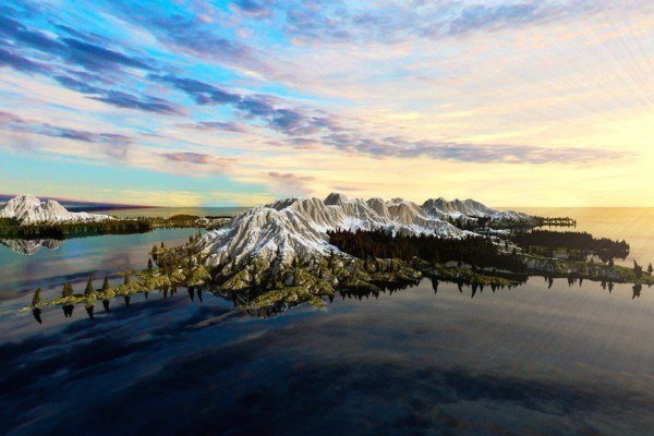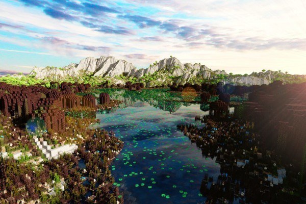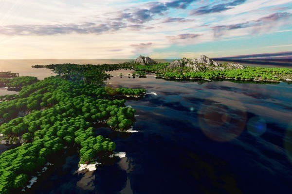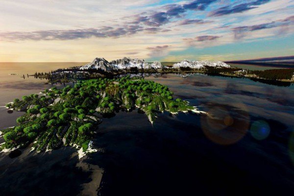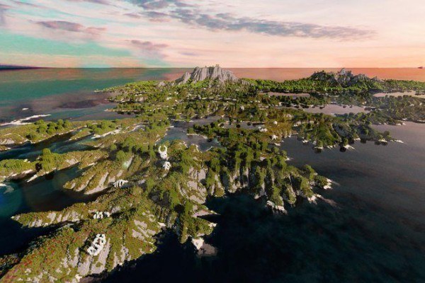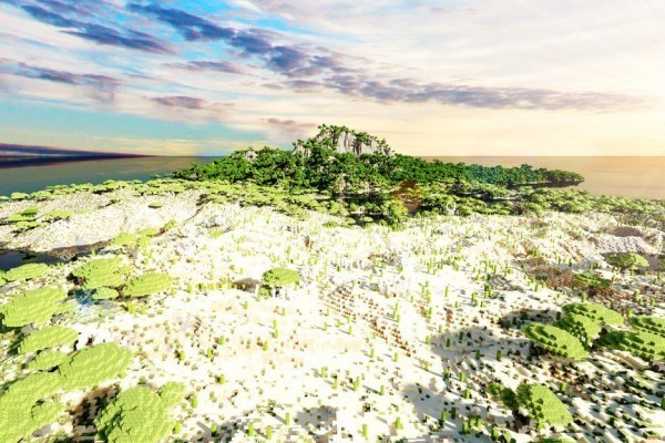 La map est composée de trois continents principaux ainsi que plusieurs petites îles. Vous y trouverez toute sorte de biomes classiques tels que la forêt, les marais, la taïga, la savane, le désert, la jungle, mais également de nombreuses montagnes et d’immenses grottes uniques en leur genre, cadre idéal pour la construction de vos bases et repaires secrets !