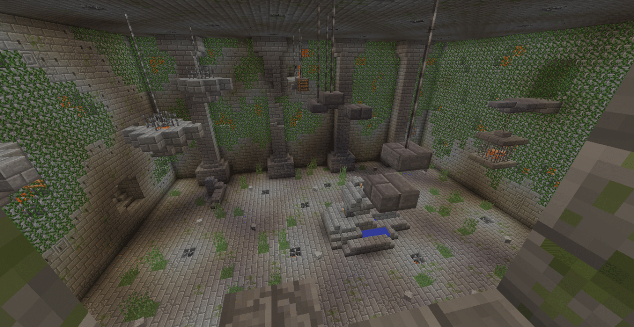 Avant de combattre le monstre, il existe un court parcours d’obstacles pour tester vos capacités, car si vous n’êtes pas assez bon vous n’aurez aucune chance de tuer le boss. Cette partie est composé de trois points de contrôle. Si vous mourez, appuyez sur le bouton sur le bloc d’émeraude, qui vous ramènera à votre dernier point de contrôle terminé. Si vous avez terminé les trois points de contrôles, ce bouton vous amène directement au combat du boss.