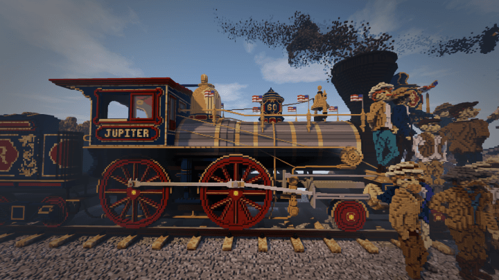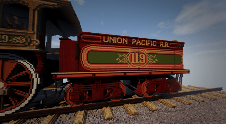 Comme dit ci-dessus, Nathan_Oneday a représenté dans ce monde cubique qu’est Minecraft, les deux locomotives principales de cette nouvelle voie ferrée. La Central Pacific n°60 surnommée Jupiter ainsi que l’Union Pacific n°119. Il a passé beaucoup de temps sur celles-ci afin de les reproduire dans les moindres détails.
