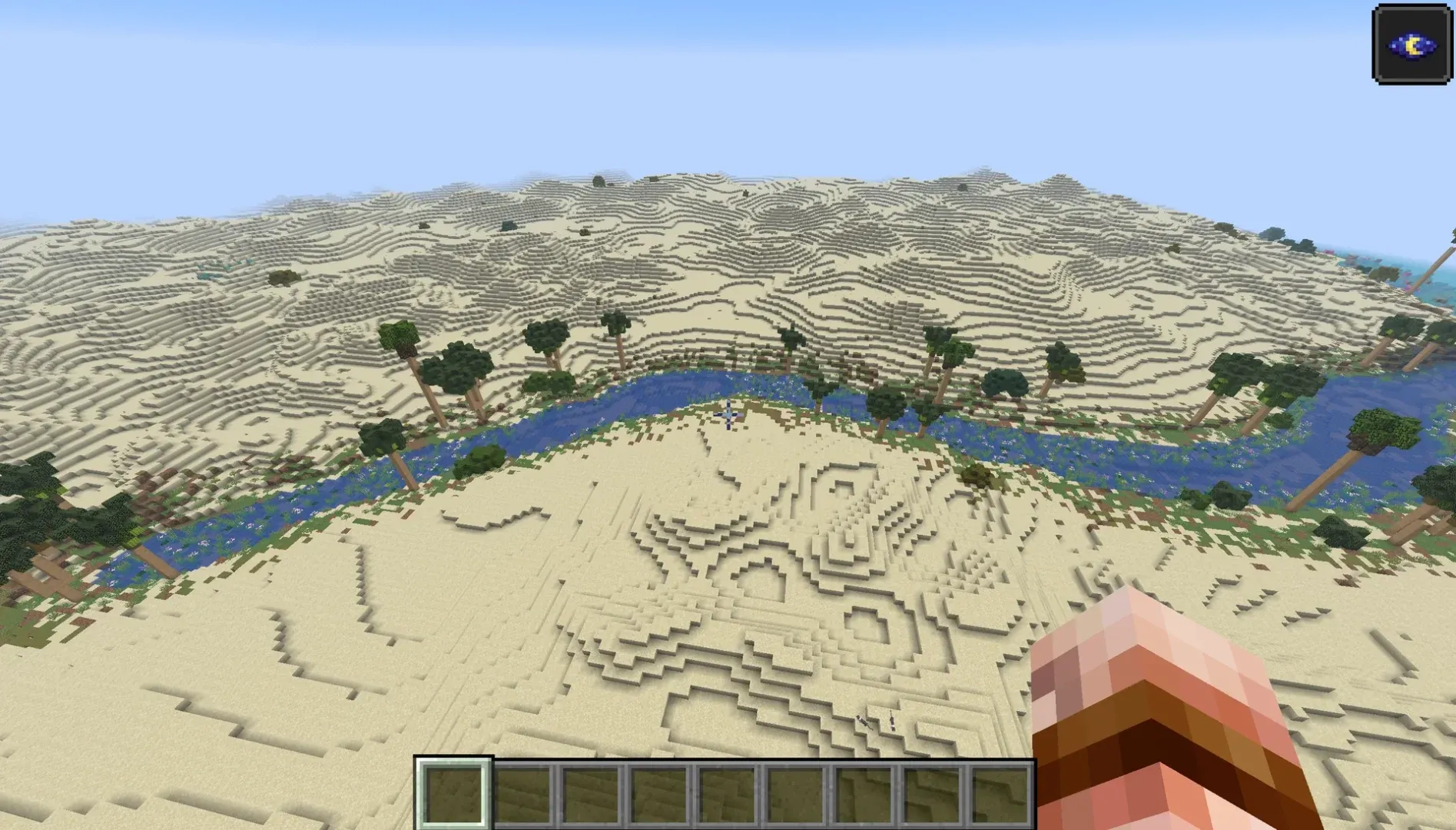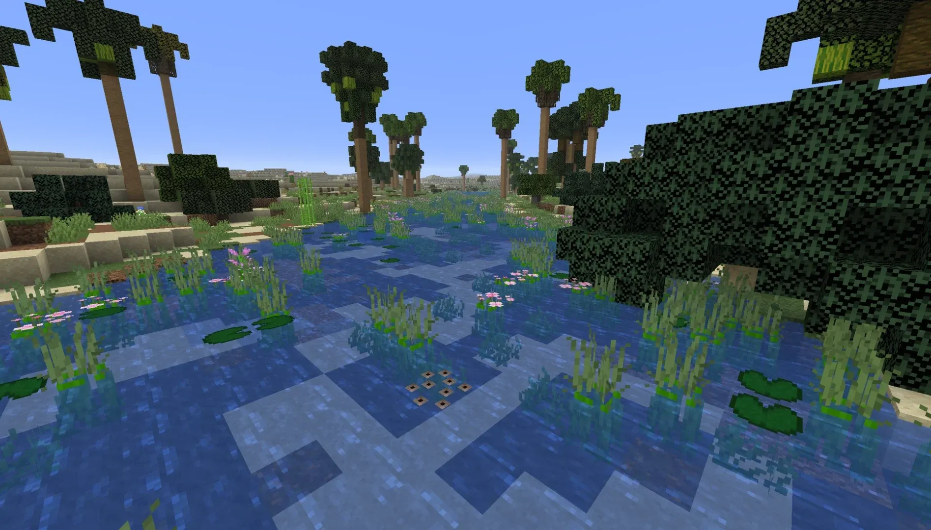 Cette région utilise d’ailleurs des biomes du Nether comme le delta de basalte pour évoquer le caractère volcanique du site. Les rivières ont une largeur exagérée par rapport à la réalité cartographique, un choix pensé pour le gameplay multijoueur et les routes commerciales.