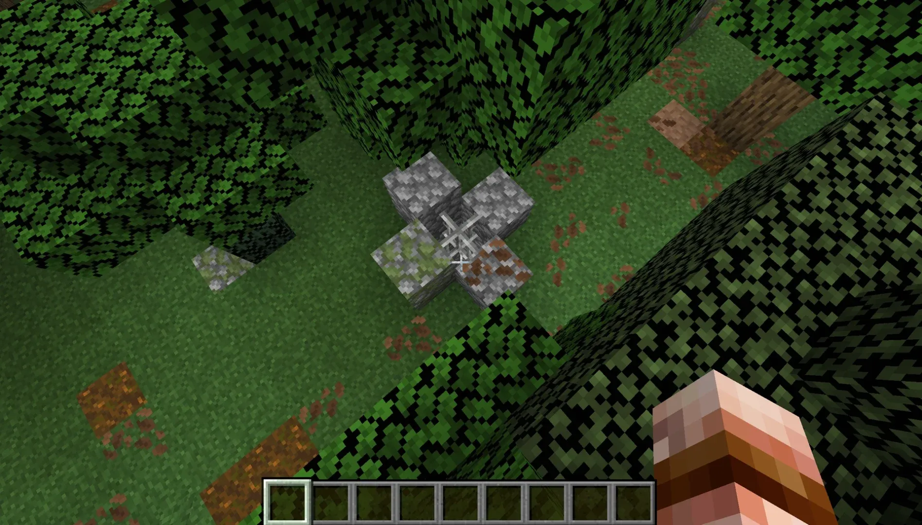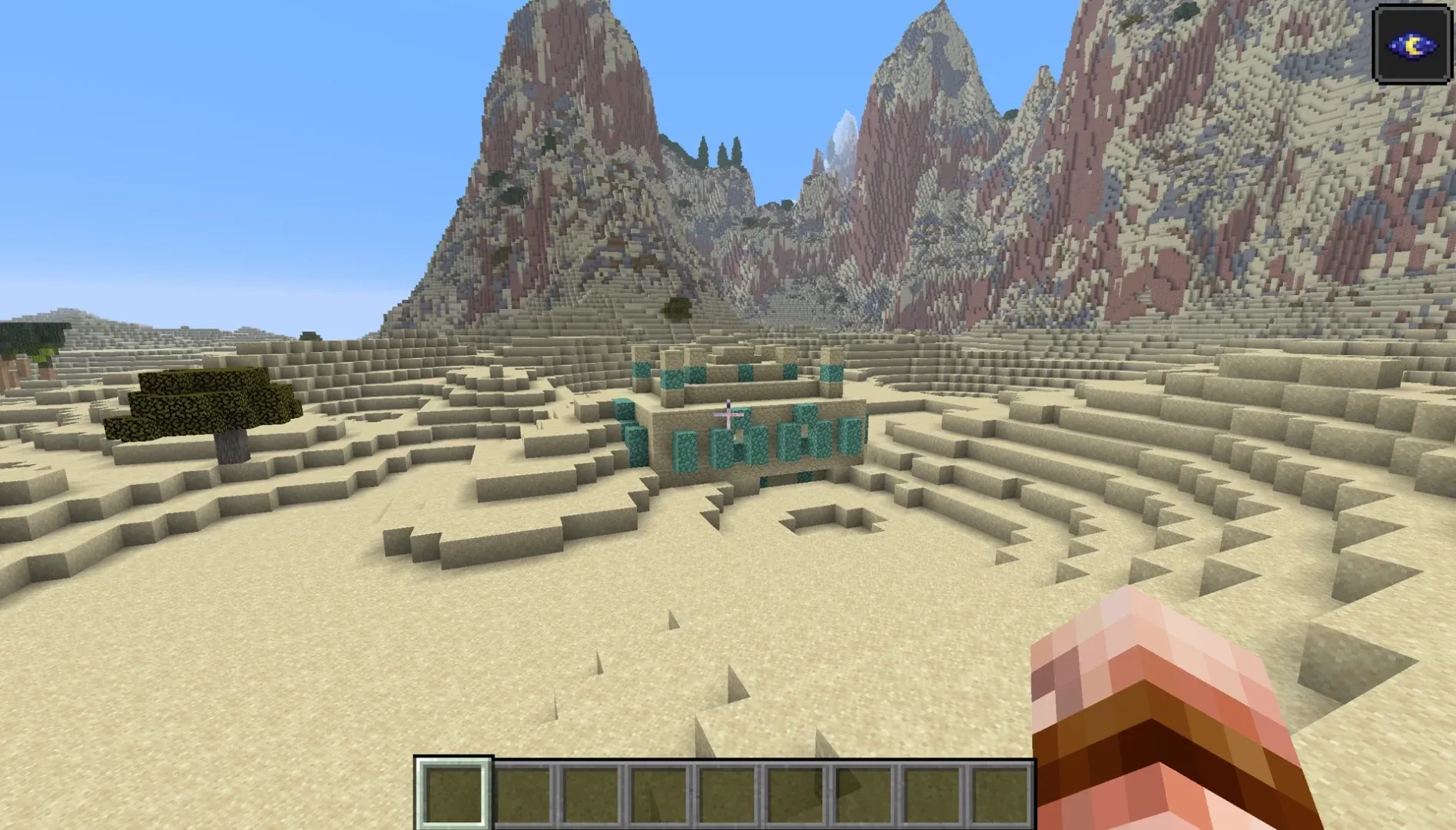 Le terrain mélange génération vanilla et personnalisations ciblées. Les minerais classiques sont présents, avec quelques ajustements : des dépôts supplémentaires de grès et terre cuite apparaissent aléatoirement, le sous-sol des déserts est en grès (contrairement à la plupart des maps custom), et l’or se trouve en quantité accrue près de Castral Roc. De l’ancient debris peut être trouvé en très faible quantité sous Valyria.