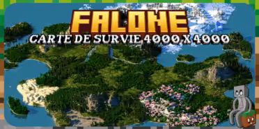 DĂ©couvrez Falone, une carte survie Minecraft 1.21+ de 4000×4000 blocs, avec biomes variĂ©s, donjons personnalisĂ©s, villages et structures intĂ©grĂ©es
