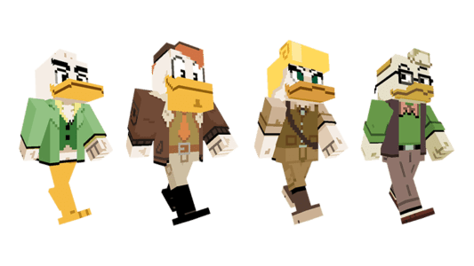 Précédemment, Mojang nous avait régalé avec le mash-up Toy Story provenant de l’univers Disney. Pour notre plus grand bonheur, Minecraft conserve ce thème, en proposant cette fois-ci, la bande à Picsou ! Vous pourrez vivre une aventure inoubliable qui sera remplie de trésors mélangeant donc l’univers de Disney et de Minecraft. Vous pourrez parcourir des lieux emblématiques tels que Donaldville, la pyramide Toth-Ra mais aussi incarner des personnages mythique de la série comme par exemple Riri, Fifi, Loulou, Picsou et bien d’autres encore. Vous pourrez profiter au total de 34 nouveaux skins exclusifs.