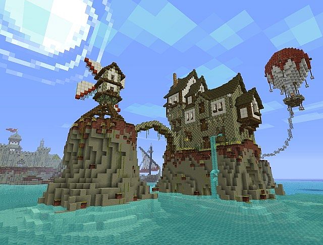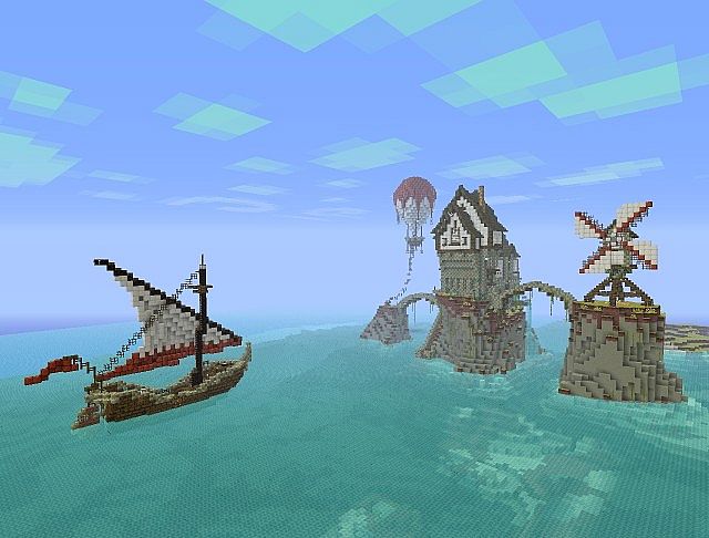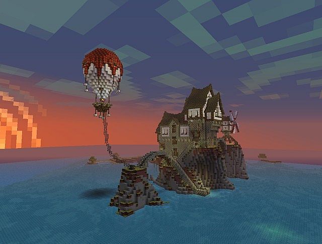Retrouvez un build très sympa représentant un petit village sur une île. On y trouve à proximité, une montgolfière, un bateau ainsi qu’un moulin, une très belle réalisation de l’auteur !