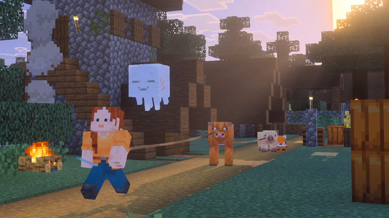Les laisses sont également revues. Leur recette de craft est simplifiée, ne nécessitant désormais que de la ficelle, et elles peuvent être utilisées pour créer des chaînes de créatures, y compris entre espèces différentes. Il est même possible d’y attacher des entités comme les bateaux, permettant de créer des convois aériens derrière un Happy Ghast.