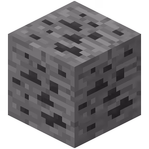 - Charbon, fer et or sous forme de minerais, générés en dépôts de 10 à 30 blocs.