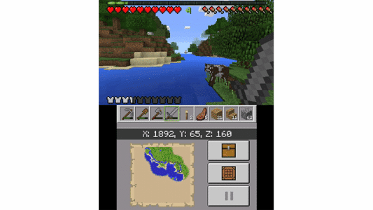 Comme vous pouvez le constater sur les screens ci-dessus, Mojang a revu l’interface du jeu afin de rendre des éléments plus visible tel que la carte, l’accès à l’inventaire ou encore la table de craft sur l’écran du bas, tandis que le haut se contentera de montrer la vue du joueur, sa barre de vie et de faim ainsi que l’expérience.