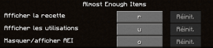 Le mod prend également en charge l’affichage des recettes de fabrication et de cuisson. Pour cela, il suffit d’appuyer sur R en survolant l’objet voulu. Pour voir les utilisations d’un certain objet, il faut appuyer sur U.