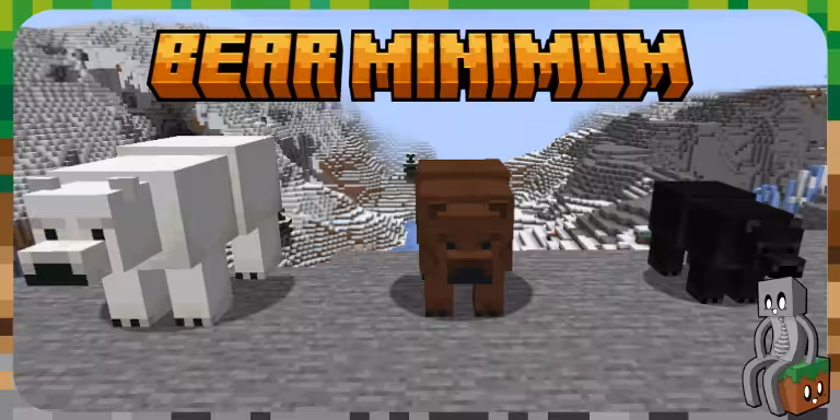 Bear Minimum est un mod léger conçu pour enrichir Minecraft en introduisant plusieurs espèces d’ours, avec un objectif clair : proposer des créatures sauvages crédibles, aux comportements réalistes, dans les biomes forestiers et montagneux. Grâce à lui, vous croiserez désormais des ours noirs, des ours bruns et même des ours polaires retravaillés. Ces nouveaux animaux sauvages apportent de la vie dans les zones boisées ou froides, tout en conservant l’équilibre du jeu.