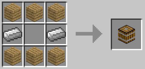 Le baril fonctionne un peu comme un four, placez votre orge dedans avec de un seau d’eau et obtenez un seau de bière :