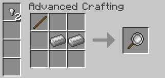 La table de craft avancée dispose de quatre emplacements supplémentaires, utilisés pour des ingrédients dits “catalyseurs” nécessaires pour compléter l’objet fabriqué. Des items comme la laine, les pépites de fer pour réaliser des rivets, les bandes de cuir pour attacher les choses ensemble sont tous utilisés comme catalyseurs. Lorsque vous effectuez une recette, les catalyseurs nécessaires sont affichés en “fantômes” dans les quatre slots en colonne à gauche de la grille de craft. Si vous essayez d’effectuer un craft qui nécessite la table de craft avancée dans une table de craft basique, un «X» rouge apparaît.