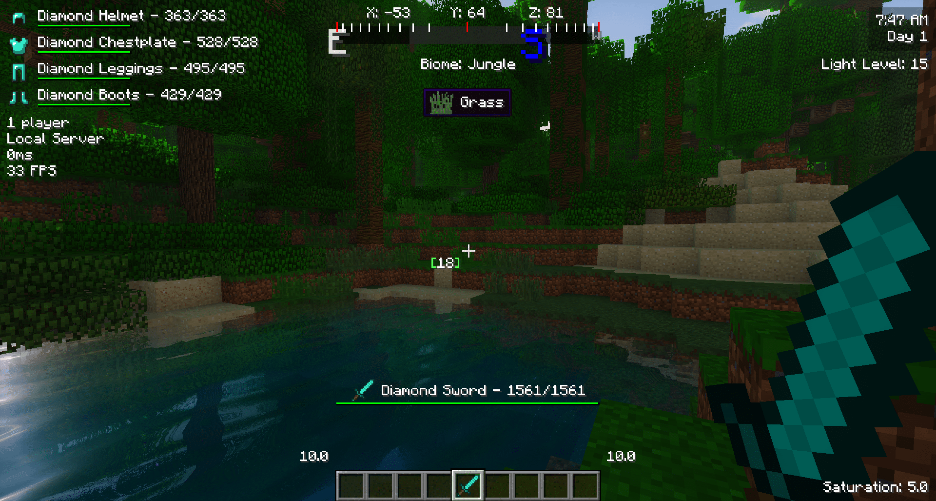 - Info équipement: Indique quelle armure et quel outil vous tenez, et affiche les dégâts de chaque élément.