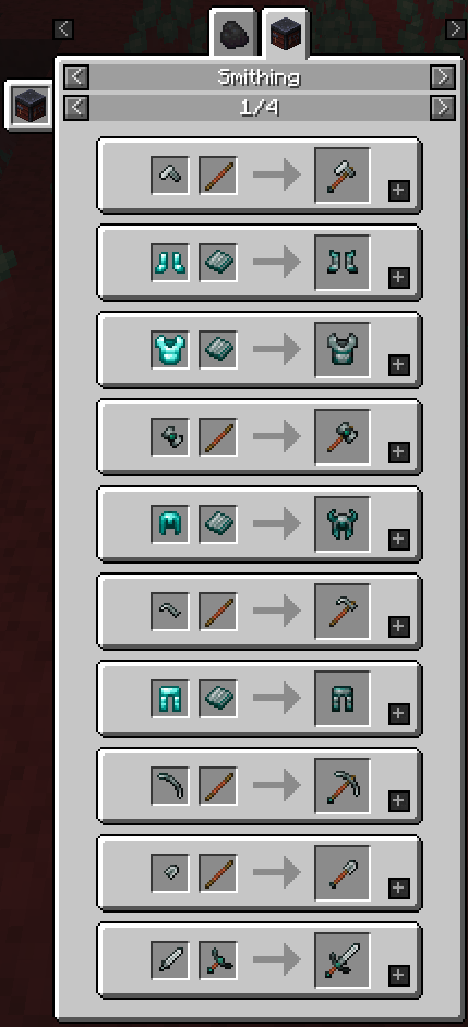 Le mod rajoute plusieurs nouvelles variantes de craft, il est conseillé de d’installer un mod comme Just Enough Items pour avoir accès à toutes les autres recettes.