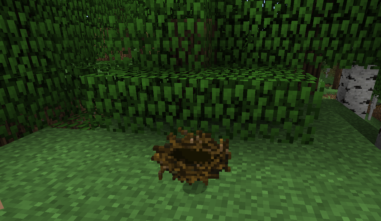 Dans la lignée des petits mods utiles en survie, Birds Nests, réalisé par cleverpanda714, vous propose l’ajout aléatoire de nids dans les arbres. Jusqu’à présent, la seule chose que vous puissiez obtenir en détruisant le feuillage des arbres étaient des pousses ou des pommes. Désormais, vous aurez une chance de faire tomber un nid avec quelques petits objets à l’intérieur.