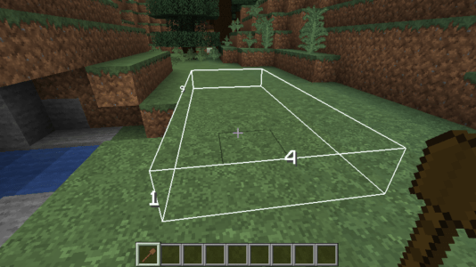 Choisissez n’importe quel élément de votre barre d’inventaire et appuyez sur la touche “,” pour l’assigner en tant qu’appareil de mesure. Il suffit ensuite de faire un clic droit sur n’importe quel bloc pour commencer à prendre votre mesure.