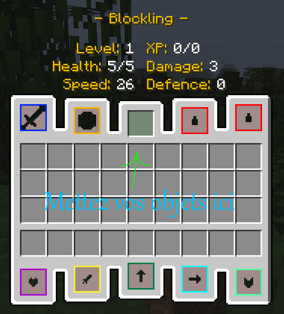Pour commencer, vous pourrez voir le niveau de votre Blockling, ainsi que sa vie, sa vitesse de déplacement, son XP, ses dommages et sa défense. Lui faire gagner des niveaux augmentera sa vie ainsi que ses autres compétences. Il faut le laisser tuer des monstres pour qu’il gagne des niveaux. Vous pouvez également lui donner plusieurs objets et le faire s’asseoir avec un clic-droit. Et si votre Blockling venait à mourir, vous récupéreriez un item permettant de le faire revenir à la vie. Notez toutefois qu’il perd tous ses objets.