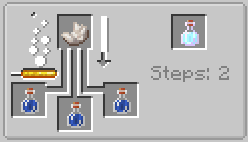 - Recall Potion – Vous téléporte à votre spawn (généralement ou vous avez dormi.) Mettez trois potions mundane avec du nether quartz dans un alambic.
